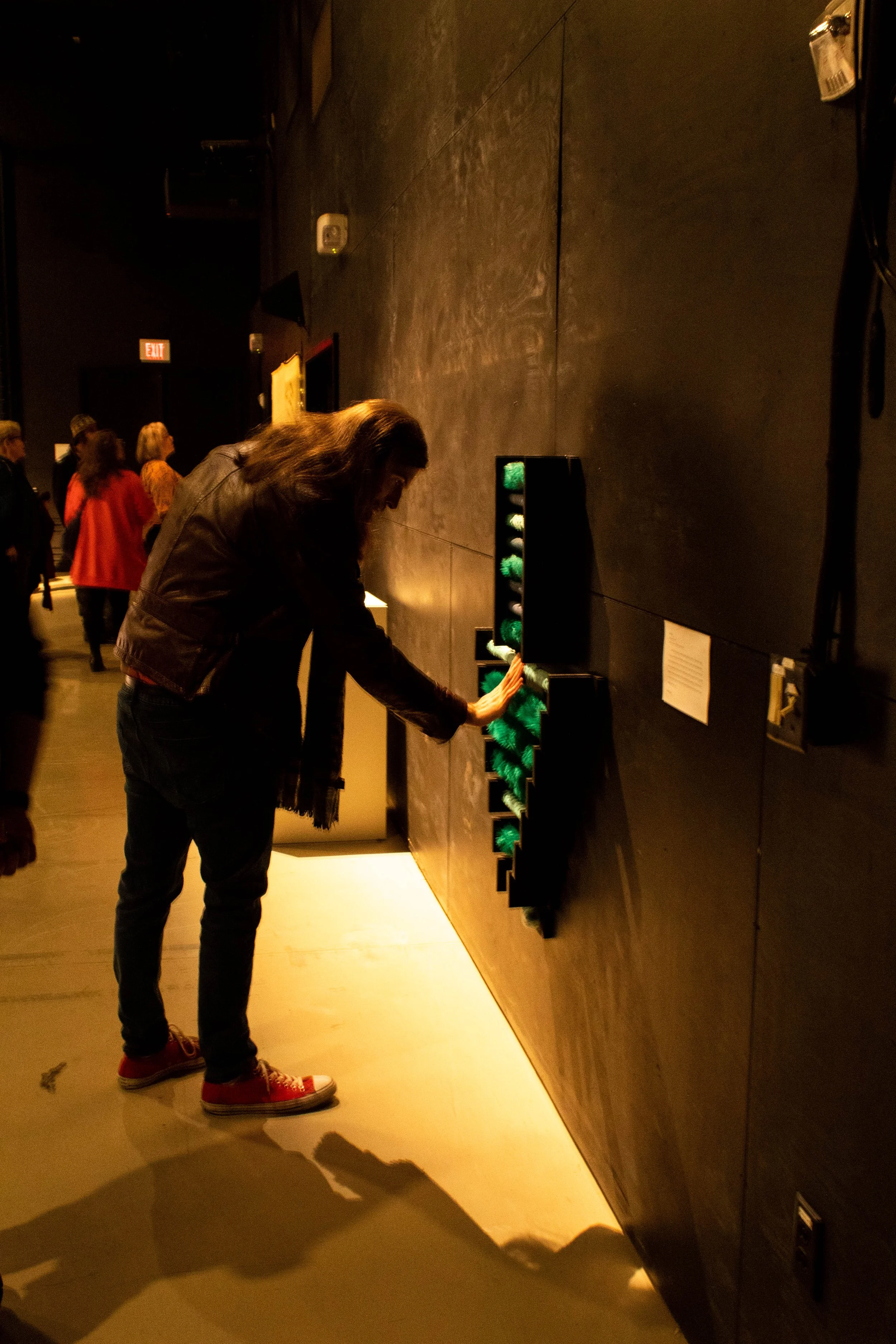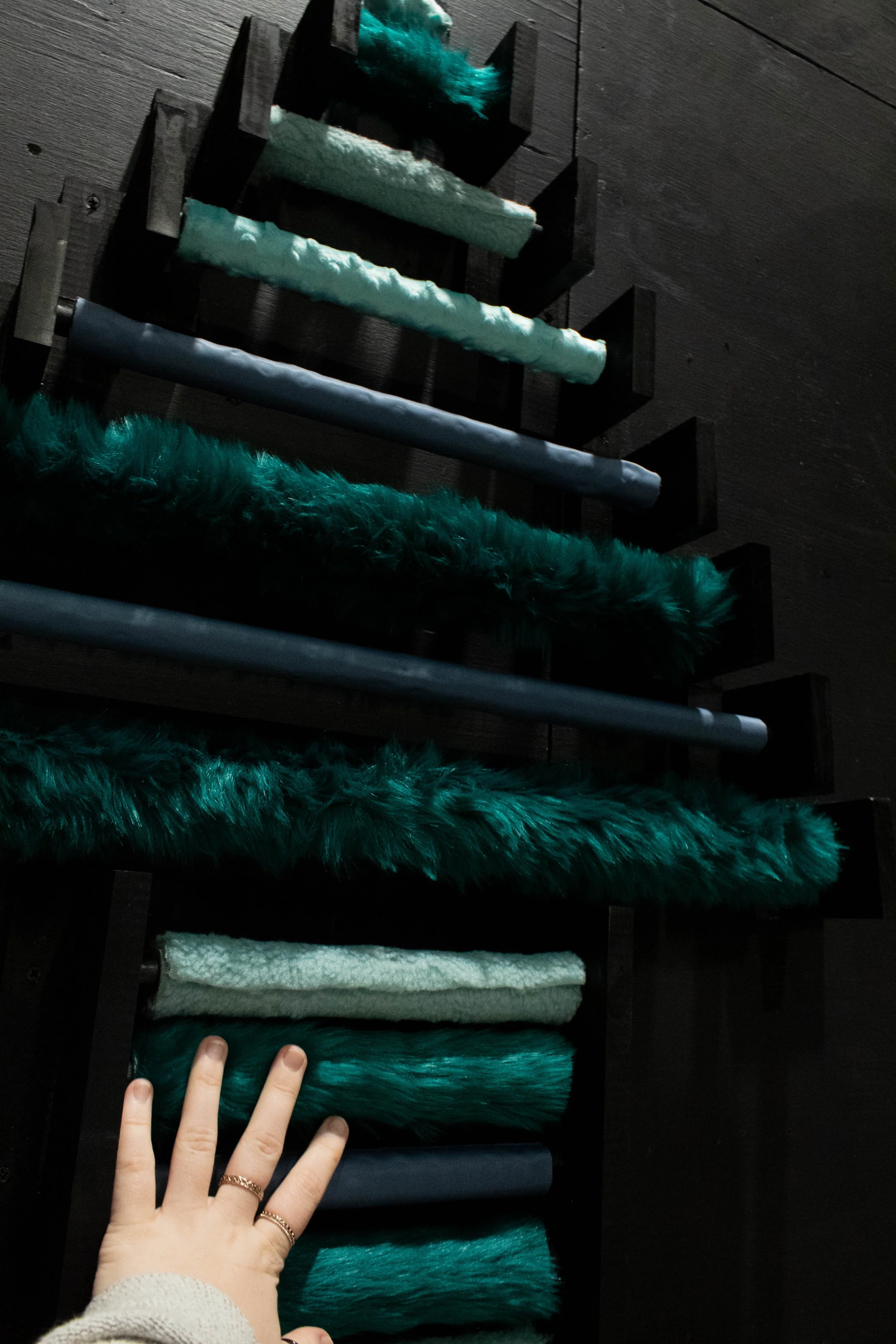 The different textures utilize leftover fabrics from a previous work, Sensation, to reduce waste and further engage more people, people seeking out dissimilar tactile input. From bumpy to silky to furry, these pleasant textures work to entice people to interact with the arrows. Also like the work before these textures have a playfulness to them as well.